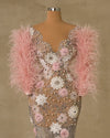 However, what truly sets this Feather Dress apart is the exquisite detailing. We've fashioned the sleeves from soft, lightweight, light pink feathers, infusing a whimsical and playful element into your look. Moreover these feathers move with your every step, creating a mesmerizing effect and swaying gracefully as you walk, leaving a trail of enchantment in your wake.