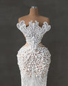 Sleeveless Bridal Dress dress lies in the intricate embellishments that adorn it. A mesmerizing array of pearls delicately graces the gown, creating a shimmering and ethereal effect. Each pearl is meticulously placed. This enhances the gown's overall allure and ensures that the bride radiates a captivating glow on her special day.