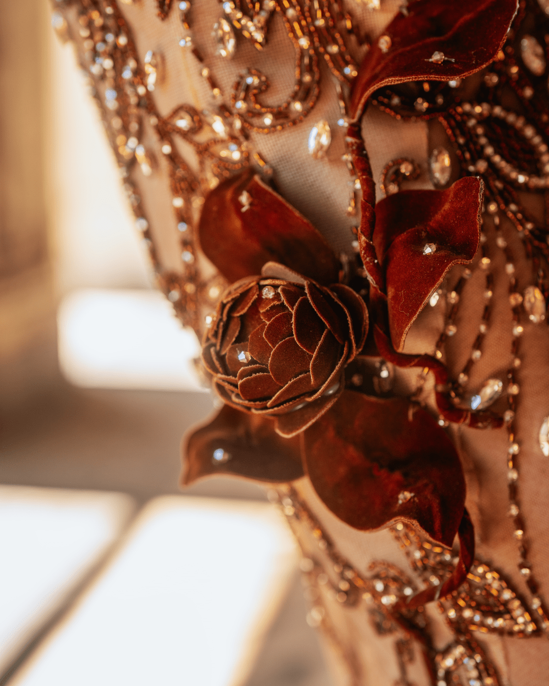 Bronze Floral Crystal Mermaid Gown
