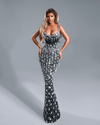 A striking, curve-defining silhouette drenched in all-over crystal embellishment, designed to shimmer with every step and captivate under the lights. From the RADIANCE collection, this gown delivers unapologetic glamour with a sleek, modern edge.