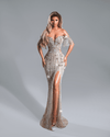 RADIANCE — Crystal Fringe Off-Shoulder Gown