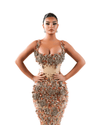 Nude Floral Embellished Gown