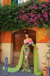 Angelica Green Dress with Flowers and Capes