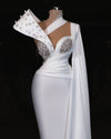 The Danielle 3D Bridal Dress with Crystals and Pearls is a breathtaking masterpiece that redefines bridal elegance. This gown features a sleek, figure-hugging silhouette crafted from luxurious white satin, exuding timeless sophistication. The highlight of the dress lies in its intricately designed bodice, which showcases a mesmerizing asymmetrical neckline. One side is adorned with shimmering crystals and luminous pearls arranged in a captivating three-dimensional pattern, creating an artistic and opulent effect.