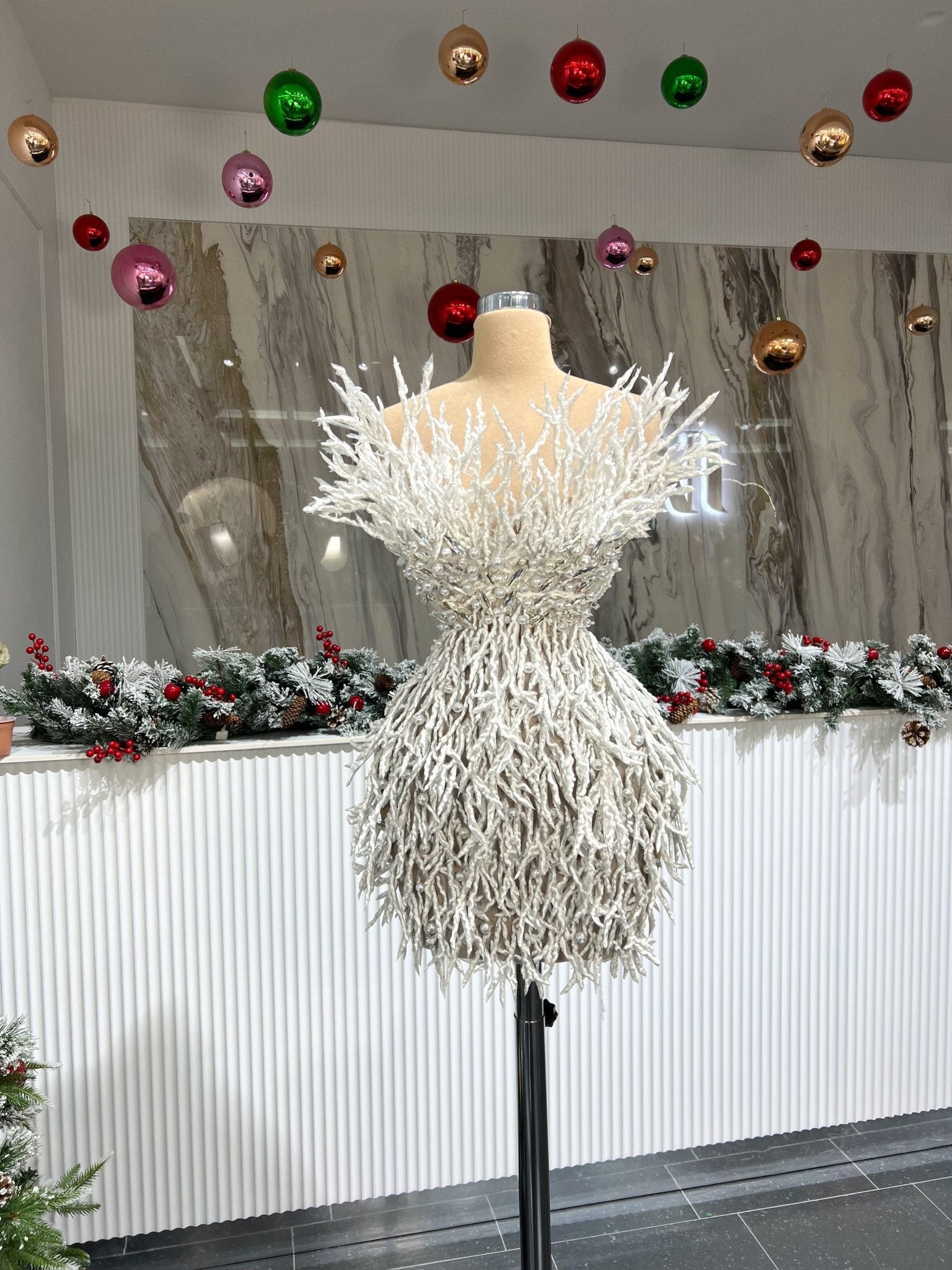 Step into the winter season in style with this stunning white sleeveless dress adorned with delicate pearls. The perfect blend of sophistication and glamour, this dress is sure to turn heads wherever you go. The flowing silhouette and elegant pearl details make it perfect for any special occasion. Pair it with heels and a chic clutch for a chic, polished look.