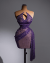 Alkea Purple Short Sleeveless Dress with Side Cape and Crystals