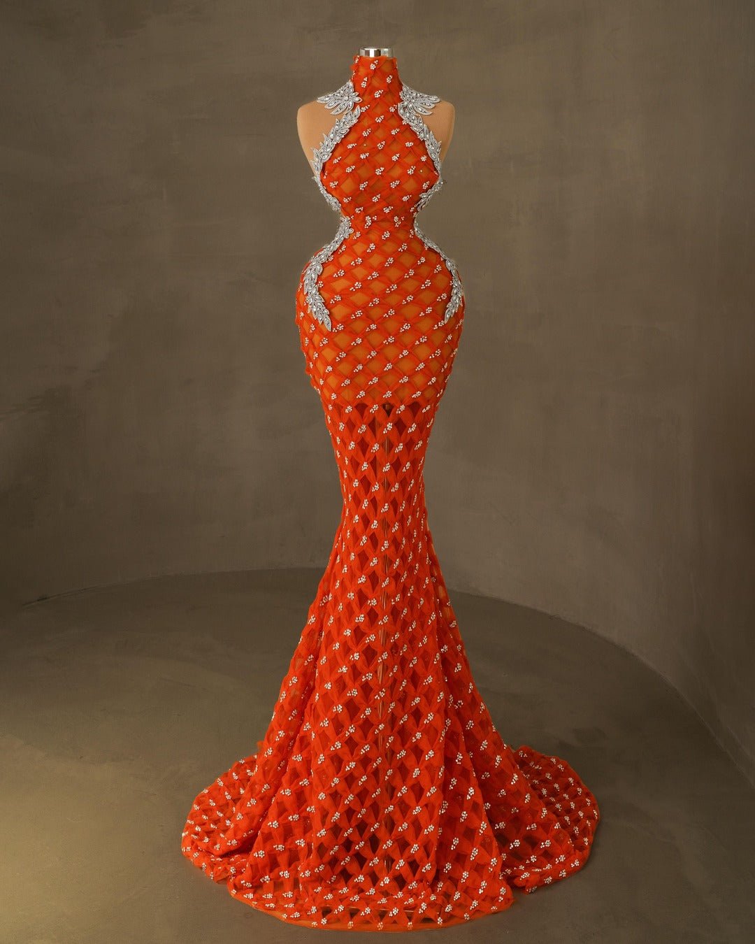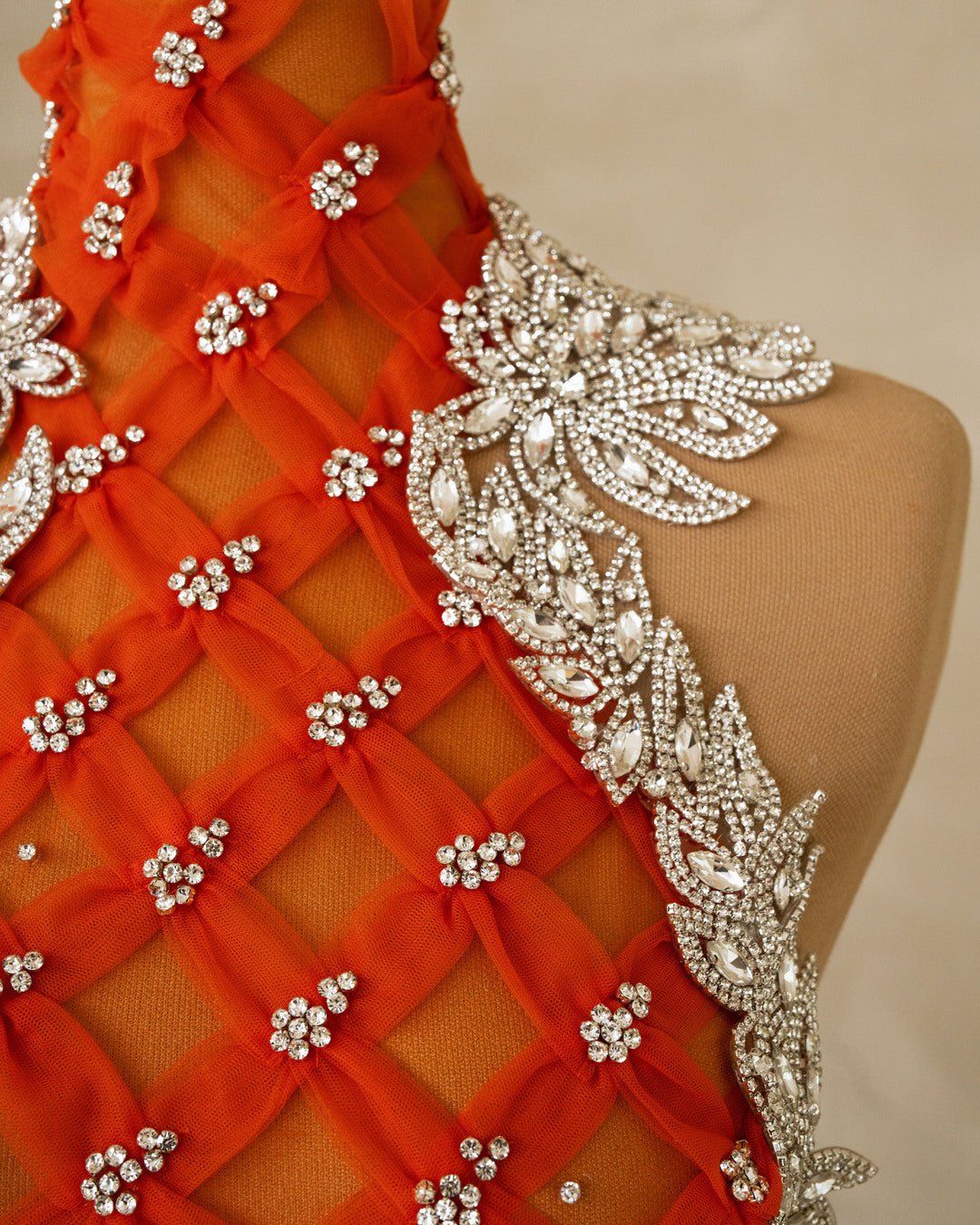 This Orange Dress is not just about looks; it's about making an entrance and leaving a lasting impression. Whether you're attending a formal gala, a glamorous wedding, or a sophisticated soirée, this dress is sure to be the highlight of the evening. The luxurious fabric feels as good as it looks, offering comfort without compromising on style. Embrace the perfect blend of bold color and shimmering detail with this unforgettable dress, designed for those special moments when only the best will do.