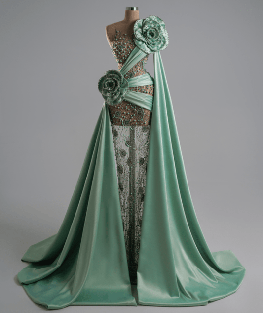 Argenta Emerald Green Long Dress With Silver Stones