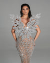 The Roisee Long Dress is a masterpiece of elegance and sophistication, meticulously designed to capture attention. This striking gown features intricate, leaf-inspired crystal detailing that cascades across the bodice and down the length of the dress, creating a mesmerizing effect. Each crystal is carefully arranged to mimic the organic flow of leaves, adding a natural yet glamorous touch to the dress. The fitted silhouette enhances the wearer's figure, while the shimmering crystals reflect light beautifully, ensuring a radiant appearance from every angle.