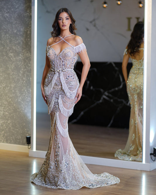 Emery Glamorous High-Neck Ballgown with Sparkling Stones
