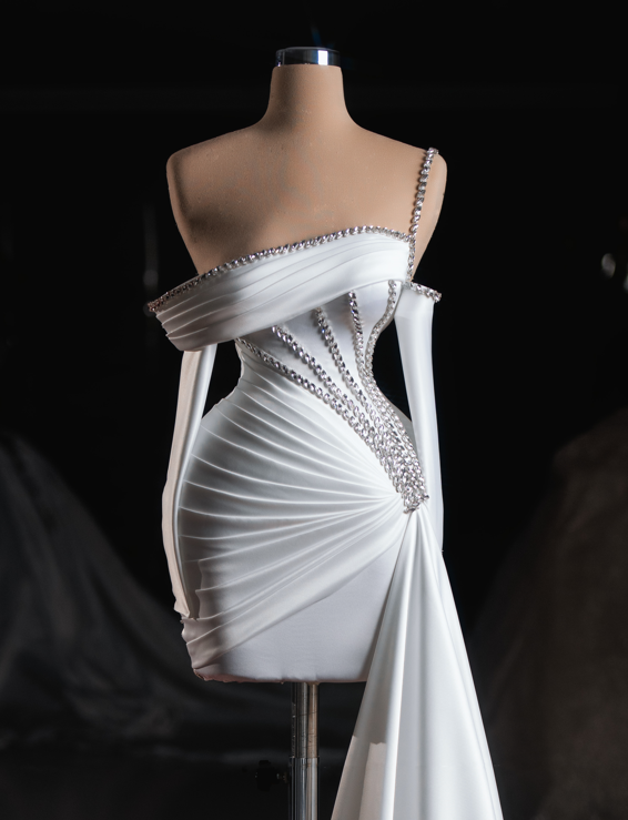 Elara Bridal Mini Dress One Shoulder