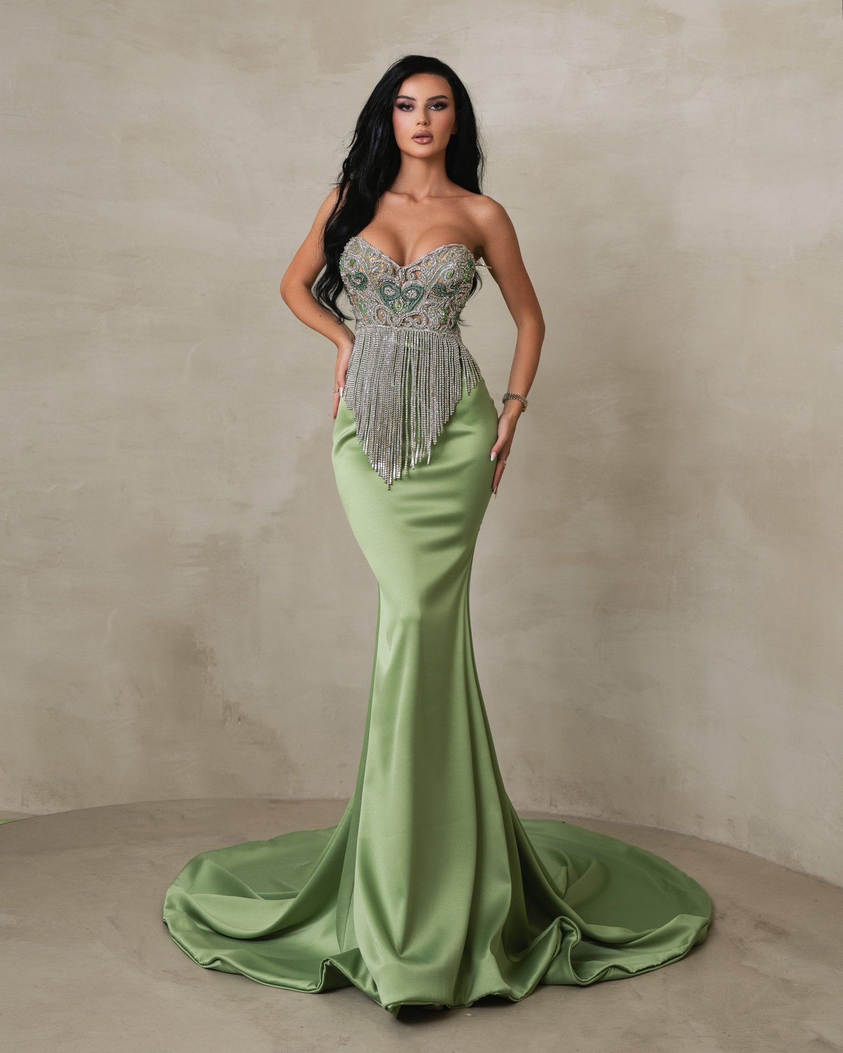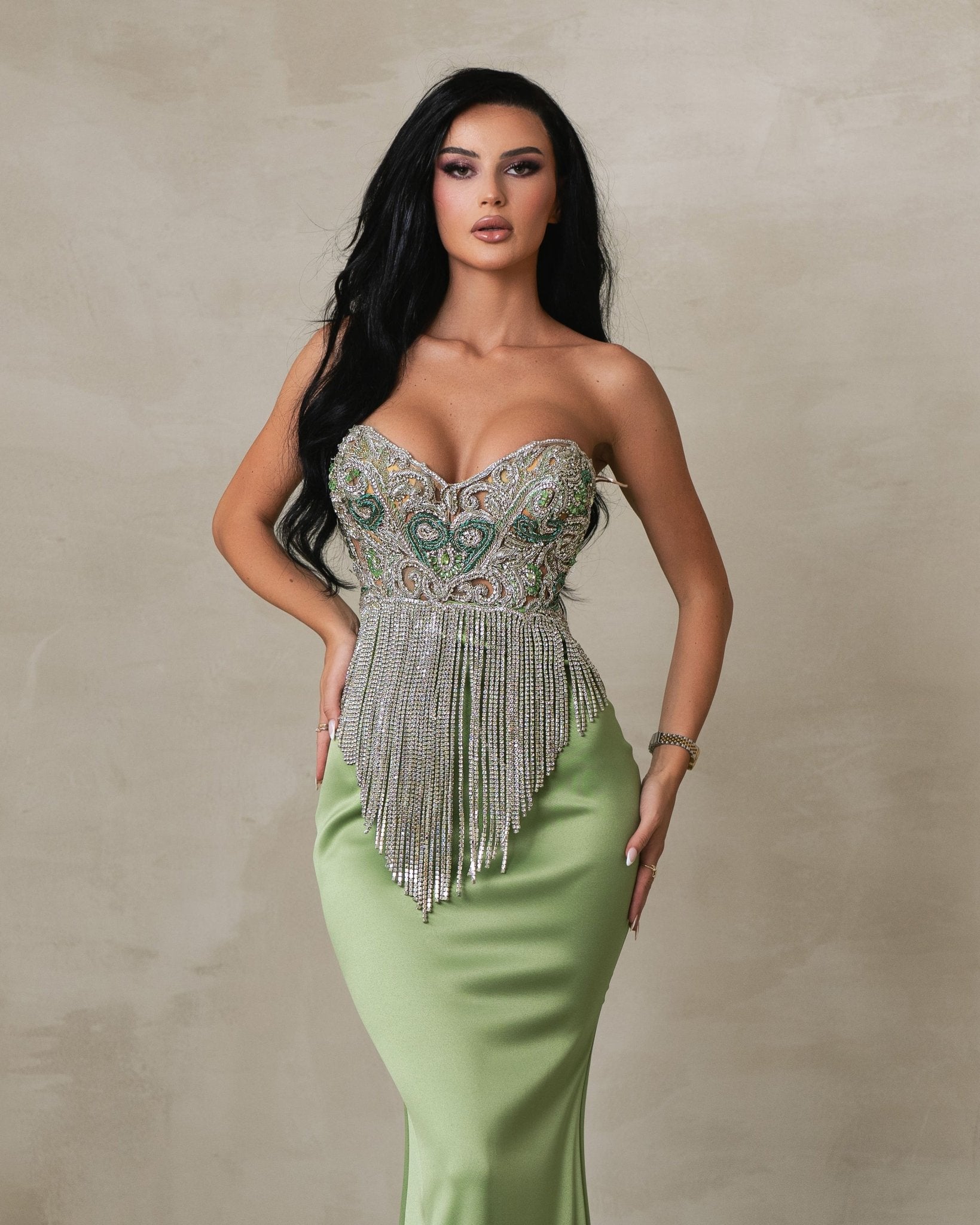 Isolara Light Green Sleeveless Dress with Silver Tassels