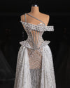 Göttlich schimmerndes Kleid mit hohem Ausschnitt