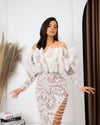 Dieses graue Kleid in Maxilänge ist ein raffiniertes und stilvolles Stück, das mit Sicherheit alle Blicke auf sich ziehen wird. Die langen Ärmel und der Maxi-Schnitt sind sowohl schick als auch elegant und eignen sich für jeden formellen Anlass. Das Kleid ist mit funkelnden Steinen verziert, die dem Gesamtdesign einen Hauch von Glamour und Glanz verleihen. Die Kombination aus dem glatten grauen Stoff und den Ziersteinen schafft einen raffinierten und auffälligen Look. Egal, ob Sie an einer Hochzeit oder einem Abendgarderobe teilnehmen, dieses Maxikleid mit langen Ärmeln und Steinen gibt Ihnen ein selbstbewusstes und stilvolles Gefühl.