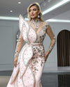 Dieses raffinierte Kleid hat einen hohen Ausschnitt, der den Hals verlängert und ihm einen Hauch von Eleganz verleiht. Das Kleid besteht aus einem luxuriösen Stoff, der wunderschön fällt, und hat eine einfache, aber schicke Silhouette, die der Figur schmeichelt. Dieses hochgeschlossene Kleid ist perfekt für eine formelle Veranstaltung oder einen besonderen Anlass und sorgt dafür, dass Sie sich sicher und stilvoll fühlen.