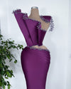 Dieses atemberaubende ärmellose lila Kleid ist mit funkelnden Kristallen verziert, die bei jeder Bewegung das Licht einfangen. Die Kristalle verleihen dem Gesamtdesign einen Hauch von Glamour und machen es zur perfekten Wahl für jeden besonderen Anlass. Das Kleid besteht aus einem luxuriösen Stoff, der wunderschön fällt, mit einer schmeichelnden Silhouette, die jeder Figur schmeichelt. Die tiefviolette Farbe ist satt und königlich, während die Kristalle einen Hauch von Glanz verleihen. Egal, ob Sie an einer Hochzeit, einem Abschlussball oder einer formellen Veranstaltung teilnehmen, dieses Kleid wird mit Sicherheit alle Blicke auf sich ziehen und Ihnen das Gefühl geben, eine wahre Königin zu sein.