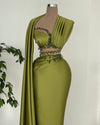 Dieses atemberaubende Side-Cape-Kleid ist mit auffälligen Steinen verziert, die bei jeder Bewegung das Licht einfangen. Die Steine verleihen dem Gesamtdesign einen Hauch von Glamour und machen es zur perfekten Wahl für jeden besonderen Anlass. Das Kleid besteht aus einem luxuriösen Stoff, der wunderschön fällt, mit einer schmeichelnden Silhouette, die jeder Figur schmeichelt. Der seitliche Umhang verleiht dem Gesamtdesign einen Hauch von Dramatik, während die auffälligen Steine einen Hauch von Glanz verleihen. Egal, ob Sie an einer Hochzeit, einem Abschlussball oder einer formellen Veranstaltung teilnehmen, dieses Kleid wird mit Sicherheit alle Blicke auf sich ziehen und Ihnen das Gefühl geben, eine wahre Königin zu sein.