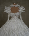 Celestia Pearl Embellished Long Sleeve Bridal Gown with Neck Detail