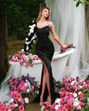 Bright One Shoulder Black Dress with Flowers