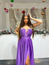 Ohrisa Purple Satin Dress Embellished with Stones