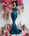Tirsa Blue Satin Dress with Silver Stones