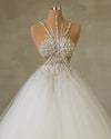 Embrace the enchantment of your special day with our Sleeveless Bridal Dress with Crystals. This gown, a close relative of our previous designs, showcases a unique neckline and a classic princess silhouette, making you feel like royalty on your wedding day.