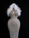 Cette robe de mariée à couper le souffle est un véritable chef-d'œuvre. Les manches longues bouffantes et la coupe profonde sur la poitrine respirent le glamour et la sophistication, tandis que l'embellissement intégral de pierres scintillantes, de perles délicates et d'étincelles scintillantes ajoute une touche de drame et d'opulence. Le corsage ajusté et la jupe évasée créent une silhouette classique à la fois intemporelle et féminine, et les pierres, les perles et les étincelles captent magnifiquement la lumière, créant un effet envoûtant. Que vous marchiez dans l'allée ou que vous posiez pour des photos, cette robe ne manquera pas de faire tourner les têtes et de vous faire sentir comme une vraie reine lors de votre journée spéciale.
