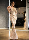 Cette robe à couper le souffle présente un design épuré et élégant, avec une queue latérale alternative unique et accrocheuse qui ajoute une touche de drame et de sophistication. La robe est ornée de pierres scintillantes qui captent la lumière à chaque mouvement, ajoutant une touche de glamour et de luxe. Les pierres sont soigneusement placées tout autour de la robe, du corsage à la jupe, créant un look vraiment magnifique et glamour. La robe présente également une silhouette flatteuse qui flatte le corps et améliore vos courbes naturelles. Parfaite pour un événement formel ou une occasion spéciale, cette robe glamour incrustée de pierres vous fera vous sentir comme une vraie reine.