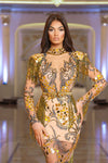 La robe longue avec des miroirs dorés et un col haut est un choix luxueux et glamour pour toute occasion formelle. Cette superbe robe présente un décolleté élégant et haut qui ajoute une touche de raffinement à la conception globale. La robe est ornée de miroirs dorés étincelants, qui ajoutent une touche de glamour et de brillance à la pièce. La longue silhouette de la robe est parfaite pour créer un look dramatique et élégant, et le col haut ajoute une touche de sobriété à la conception globale. Les miroirs dorés captent la lumière et créent un effet fascinant, rendant cette robe vraiment unique en son genre. Que vous assistiez à un événement de cravate noire ou à une soirée spéciale, cette robe longue ne manquera pas de faire tourner les têtes et de vous faire sentir comme une véritable déesse. Les détails complexes et les matériaux luxueux font de cette robe un véritable investissement qui résistera à l'épreuve du temps. Donc, si vous voulez faire une déclaration et vous sentir comme la belle du bal, assurez-vous de considérer cette robe longue glamour avec des miroirs dorés et un col haut.
