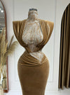 Cette élégante robe longue à col haut est le choix parfait pour toute occasion spéciale. La couleur beige est classique et neutre, ce qui la rend facile à accessoiriser avec une variété de bijoux et de chaussures. Le design sans manches est parfait pour montrer vos bras et vos épaules, tandis que l'encolure haute ajoute une touche de sophistication et de raffinement. La robe est ornée de cristaux flashy qui ajoutent une touche d'éclat et de brillance, ce qui la rend parfaite pour un événement formel ou une soirée en ville. Le tissu confortable et flatteur garantit que vous vous sentirez en confiance et à l'aise toute la nuit. Associez cette robe à des talons à lanières et à des boucles d'oreilles tendance pour un look chic et raffiné.