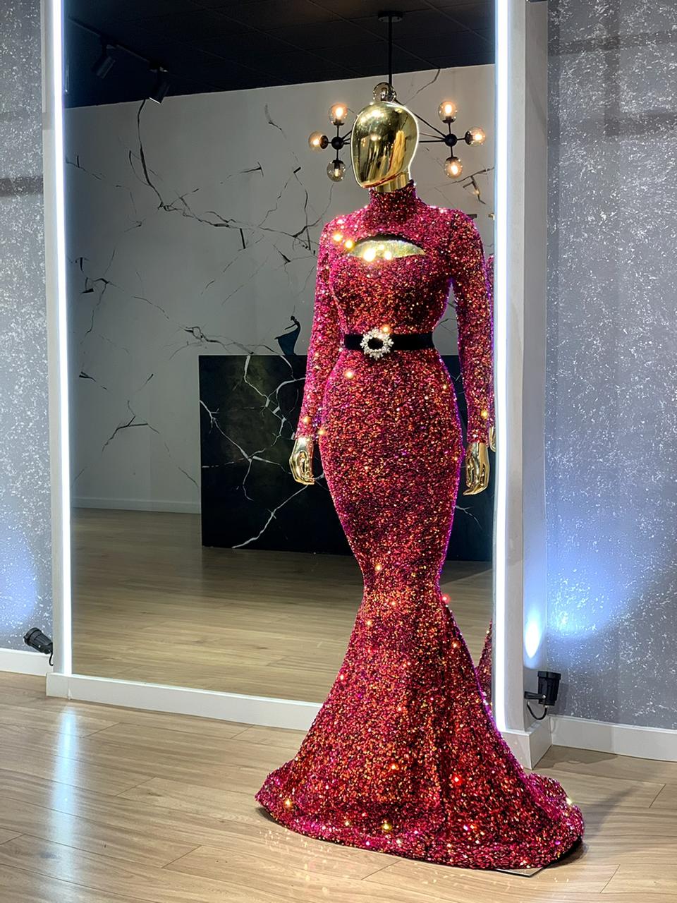 Cette robe à paillettes rouges à couper le souffle est le choix parfait pour tout événement formel ou occasion spéciale. Le col haut et les manches longues ajoutent une touche de glamour et de sophistication, tandis que la longueur de la robe vous assure de faire une entrée remarquée. Les paillettes captent magnifiquement la lumière, ajoutant de l'éclat et de la brillance à votre look général. Le tissu extensible assure une coupe confortable et flatteuse, tandis que la silhouette élégante et moulante mettra en valeur vos courbes de toutes les bonnes manières. Que vous assistiez à un mariage, à un bal de promo ou à tout autre événement spécial, cette robe ne manquera pas de faire tourner les têtes et de vous faire sentir comme une véritable star. Associez-la à des talons et à des boucles d'oreilles tendance pour un look vraiment inoubliable. La couleur rouge audacieuse ajoute une touche dramatique et rend cette robe parfaite pour faire une déclaration.