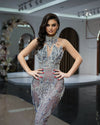 Moreover, as your gaze travels down the length of this High Neck Dress, the luxurious lace continues to captivate, enhancing the overall sense of opulence. The marriage of beads, crystals, and silver tassels creates a harmonious symphony of textures and tones. Additionally, this ensures you stand out at any formal occasion.