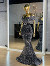 This breathtaking off shoulder sequin dress is the perfect choice for any formal event or special occasion. The off shoulder design adds a touch of glamour and femininity, while the long length of the dress ensures that you'll make a grand entrance. The sequins catch the light beautifully, adding sparkle and shine to your overall look. The stretchy fabric ensures a comfortable and flattering fit, while the sleek, figure-hugging silhouette will showcase your curves in all the right ways. Whether you're attending a wedding, prom, or any other special event, this dress is sure to turn heads and make you feel like a true star. Pair it with heels and statement earrings for a truly unforgettable look.