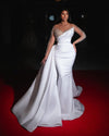 The Arianne Bridal Dress with Crystal-Embellished Sleeves is the epitome of modern elegance and timeless sophistication. This gown is crafted for the bride who desires to shine effortlessly on her special day. The dress features a luxurious silhouette that gracefully hugs the figure, enhancing natural curves while maintaining an air of refined elegance.