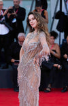 Introducing the epitome of elegance and glamour: Daniela Bessia gracing the Venice Film Festival 2023 in a breathtaking silver dress adorned with shimmering tassels and exquisite crystals. This dress is a true masterpiece, a fusion of sophistication and opulence that will leave everyone in awe.