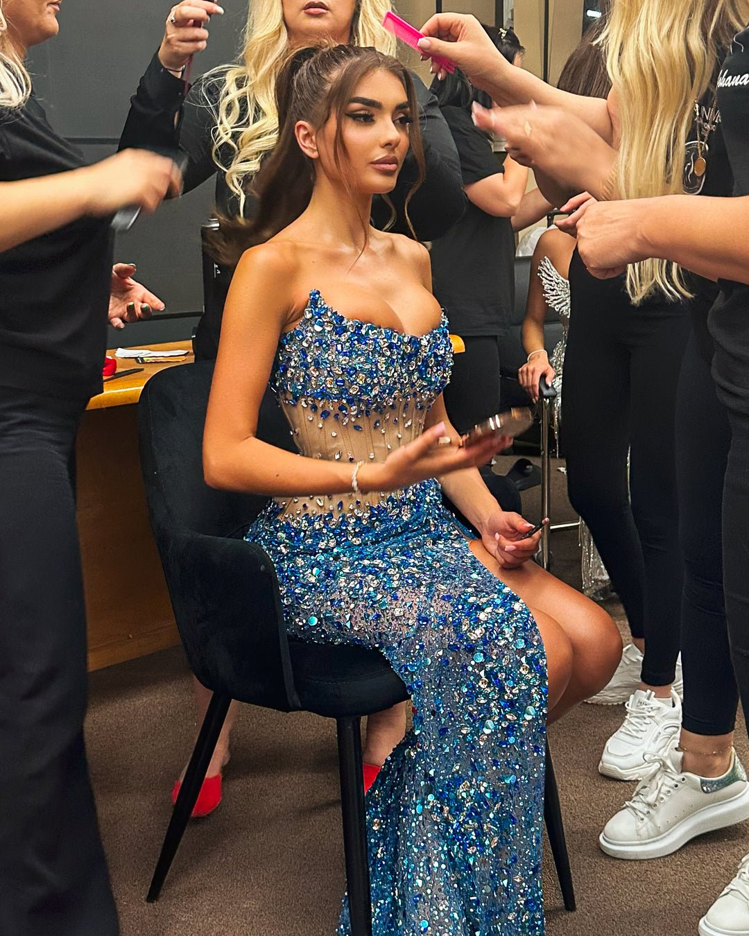 Megi Shehaj in Blini's Blue Dress at Miss Universe