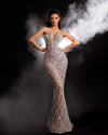 Crafted from exquisite silver lace, this Silver Dress embodies ethereal beauty with every delicate thread. Additionally, the lace drapes effortlessly, hugging the curves in a flattering embrace, while exuding an air of enchantment and grace. Furthermore, its intricate design whispers tales of elegance and romance, enchanting all who lay eyes upon it.