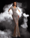 Adorn yourself in sheer elegance with this exquisite Silver Dress, a marvel of timeless sophistication and opulent detailing. Additionally, crafted to perfection, this long-sleeved masterpiece exudes grace and allure from every angle.