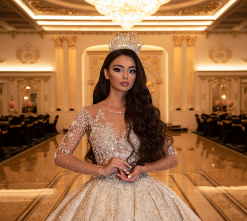 Simona Opulent Embroidered Lace Wedding Gown with Sequins